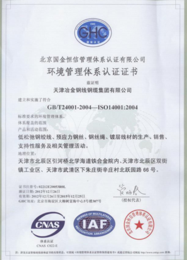 • 南通鋼絲繩公司預應力混凝土用鋼筋認證證書